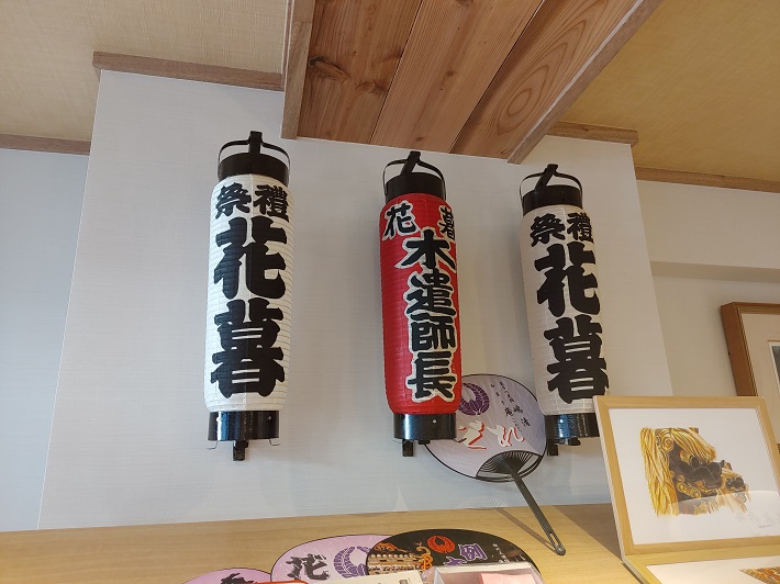 地元愛の強いご主人。 展示品も地元に馴染んだ物です。 お祭りで使用する提灯には 特別に貢献した人だけが頂ける物も あるのだとか。