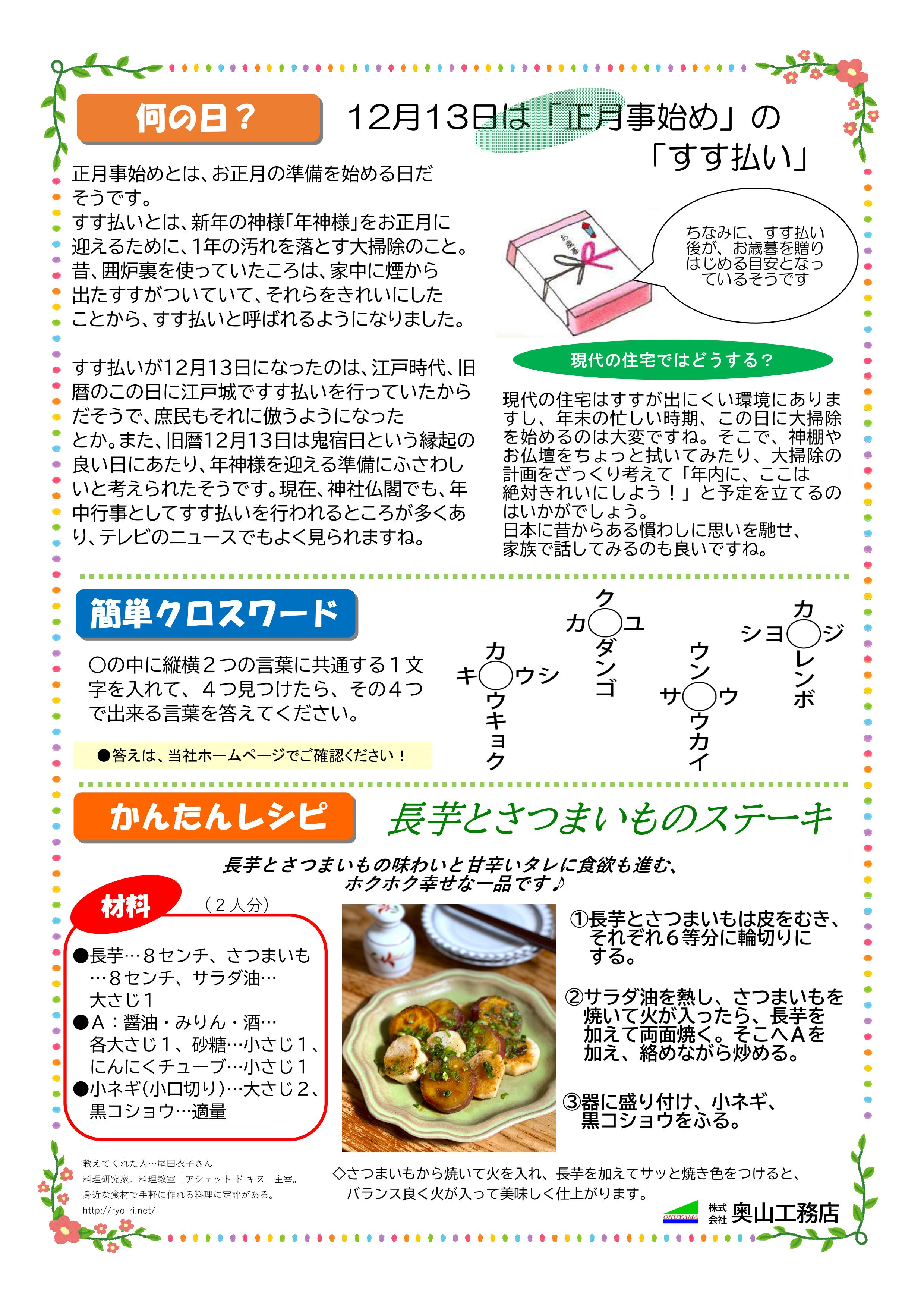 朝晩の冷たい空気に冬を感じる今日この頃、いかがお過ごしでしょうか。